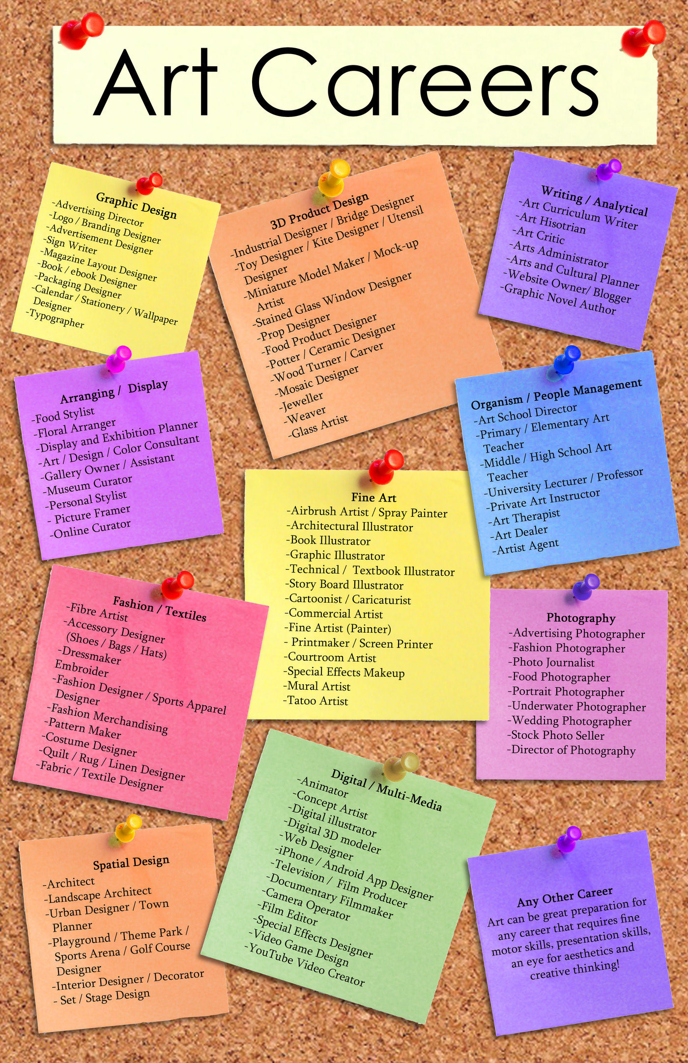 The following are just a few fields in which girls studying art may wish to pursue: